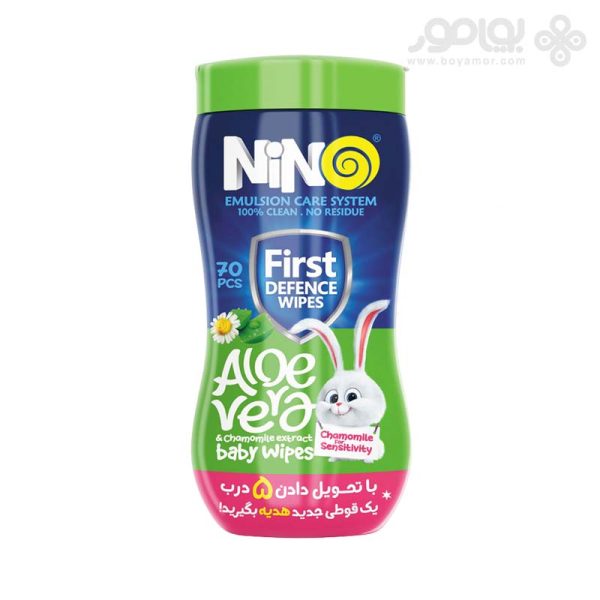 دستمال مرطوب پاک کننده کودک قوطی آلوئه ورا و بابونه نینو Baby Wet Wipes With Chamomile And Aloevera