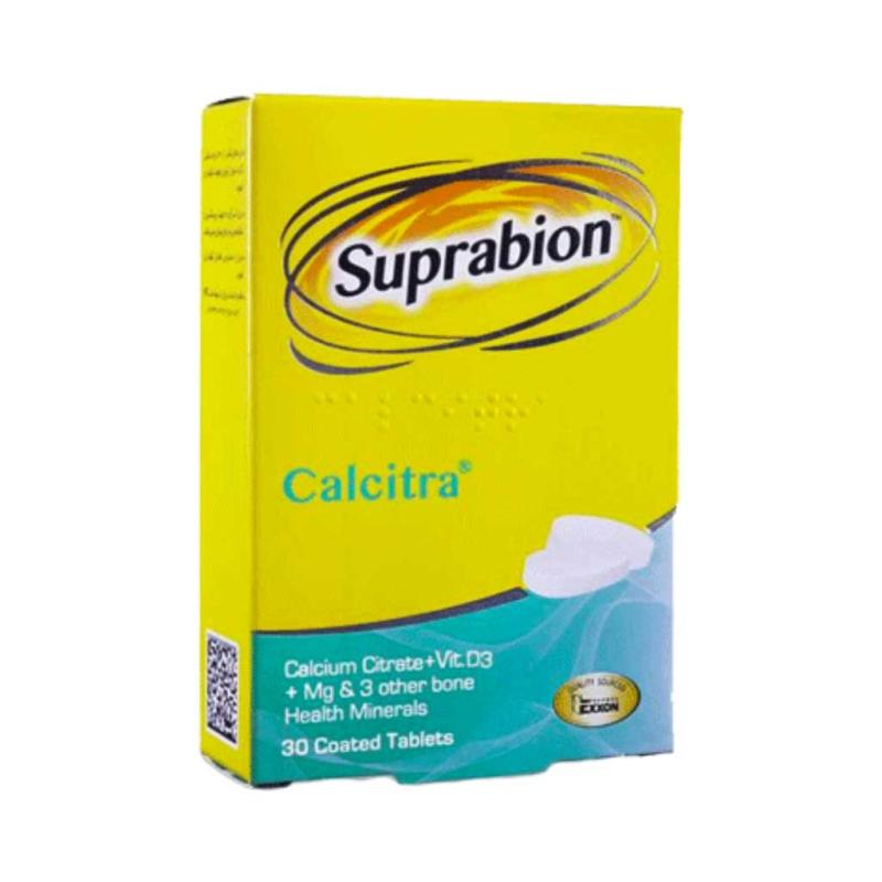 سوپرابیون کلسیترا:کلسیم سیترات: کلسیم سیترات دارای جذب بالاتر نسبت به سایر املاح کلسیم از جمله کلسیم کربناتدارای حداقل عارضه گوارشیبرای جذب نیاز به محیط اسیدی معده ندارد در نتیجه برای افراد سالمند، افراد دریافت کننده داروهای آنتی اسید و افرادی که دارای مشکل در دیواره معده هستند مناسب میباشد.