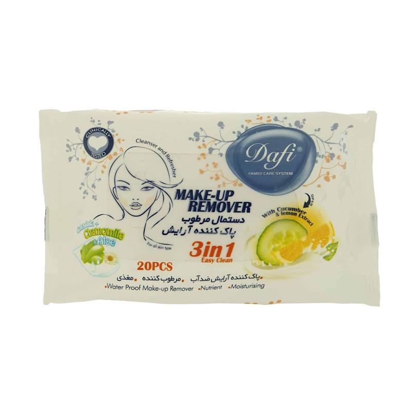 دستمال مرطوب پاک کننده آرایش ۲۰ عددی دافی مدل 3in1 Dafi 3in1 Make Up Remover Wet Wips 20pcs
