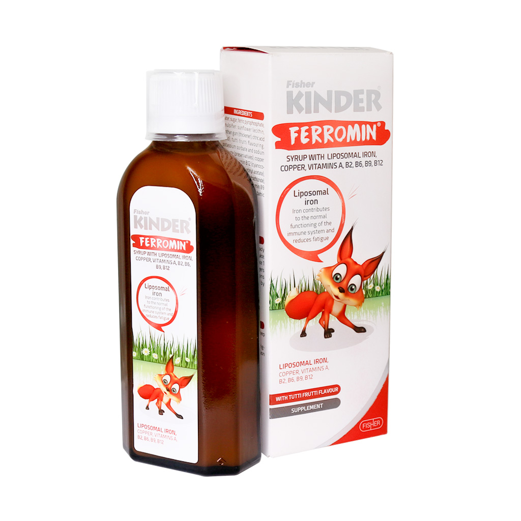 - شربت فرومین کیندر حاوی آهن، ویتامین A، ویتامین B2، ویتامین B6، ویتامین B9، ویتامین B12 و مس