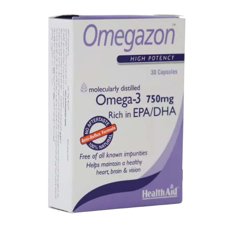 - کپسول امگازون هلث اید علاوه بر کمک به بهبود بیماریهایی همچون آسم، اگزما، پسوریازیس، زوال عقل و از بین رفتن حافظه برای رشد و نمو طبیعی بدن لازم است. قرص امگا 3 هلث اید به دلیل پوشش ویژهای که دارد طعم و بوی ماهی را دفع کرده و به راحتی قابل استفاده است. از دیگر مزیتهای کپسول امگازون میتوان به ویژگی فاقد جیوه و هرگونه مواد مضر بودن آن اشاره نمود. زیرا که جیوه یک نوروتوکسین بوده و میتواند سلامتی افراد را به اشکال مختلف تحت تاثیر قرار دهد. به طور مثال این ماده برای جنین در دوران بارداری، پوست و خون تاثیرات مخرب بسیاری دارد.