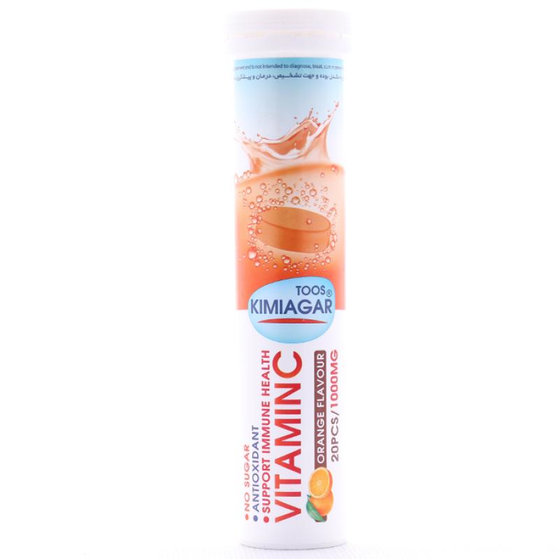 قرص جوشان ویتامین ث 1000 میلی گرم کیمیاگر طوس20 عددی kimiagar Toos vitamin C effervescent tablets - 1000 mg, pack of 20