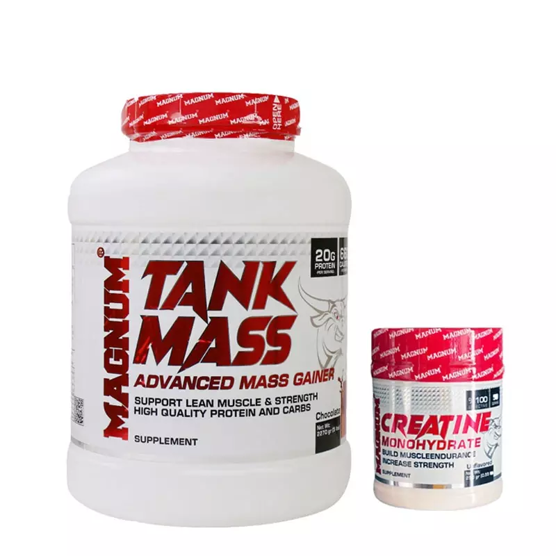 پک گینر تانک مس مگنوم2270 گرم به همراه کراتین مونوهیدرات مگنوم 250 گرم Magnum Ganer Tank Mass Powder 2270 g+Magnum Creatine Monohydrate Powder 250G