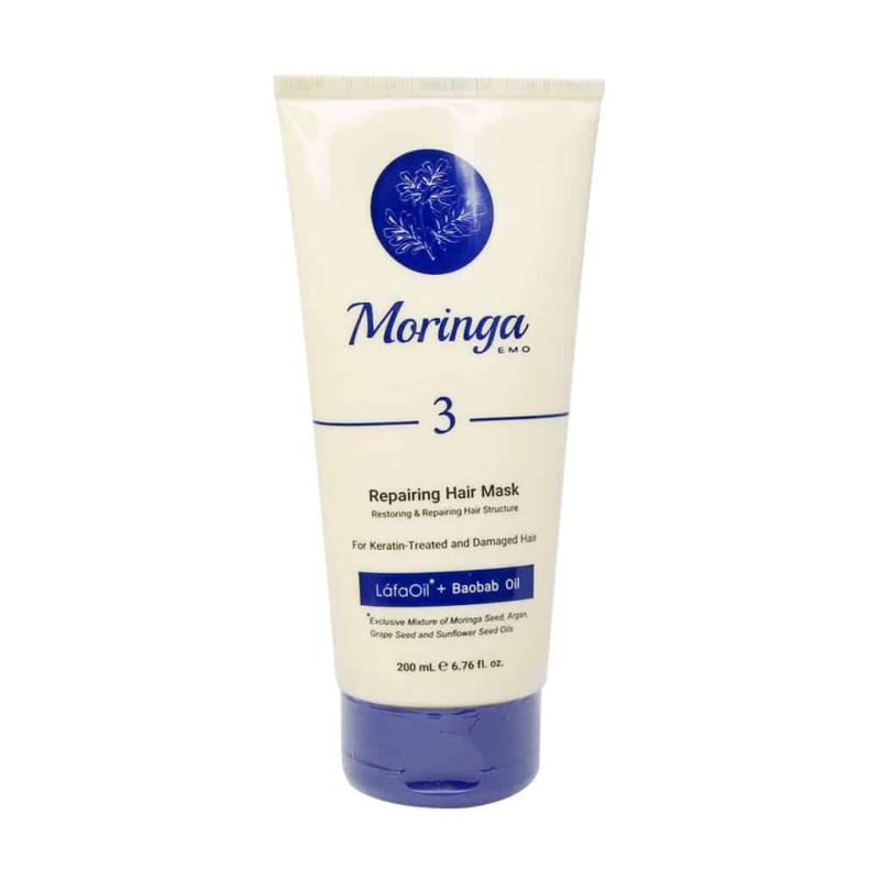 ماسک مو ترمیم کننده 3 مورینگا امو مناسب موهای کراتینه و آسیب دیده 200 میلی لیتر Moringa Emo Repairing Hair Mask For Keratin Treated Hair Structure 200 ml