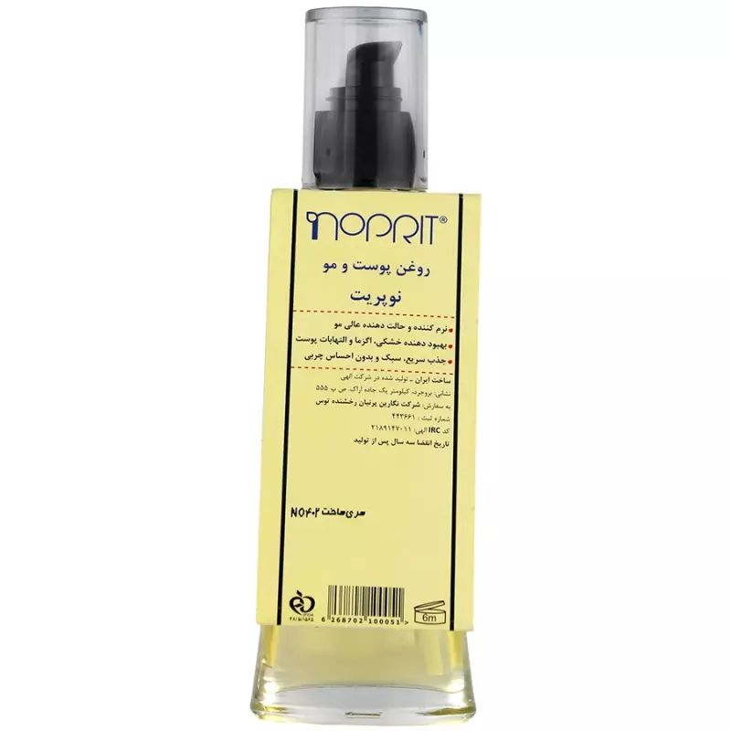 روغن نوپریت، روغن تقویت کننده نوپریت، سرشار از روغن های گیاهی و انواع ویتامین ها است که با ترکیبات منحصر به فرد خود موجب تقویت پوست و مو می شود. این محصول چند منظوره یک آبرسان و مرطوب کننده فوق العاده عالی است که با رطوبت رسانی عمیق به لایه های درونی پوست و مو موجب افزایش سلامتی و رفع خشکی پوست و شکنندگی موها خواهد شد.