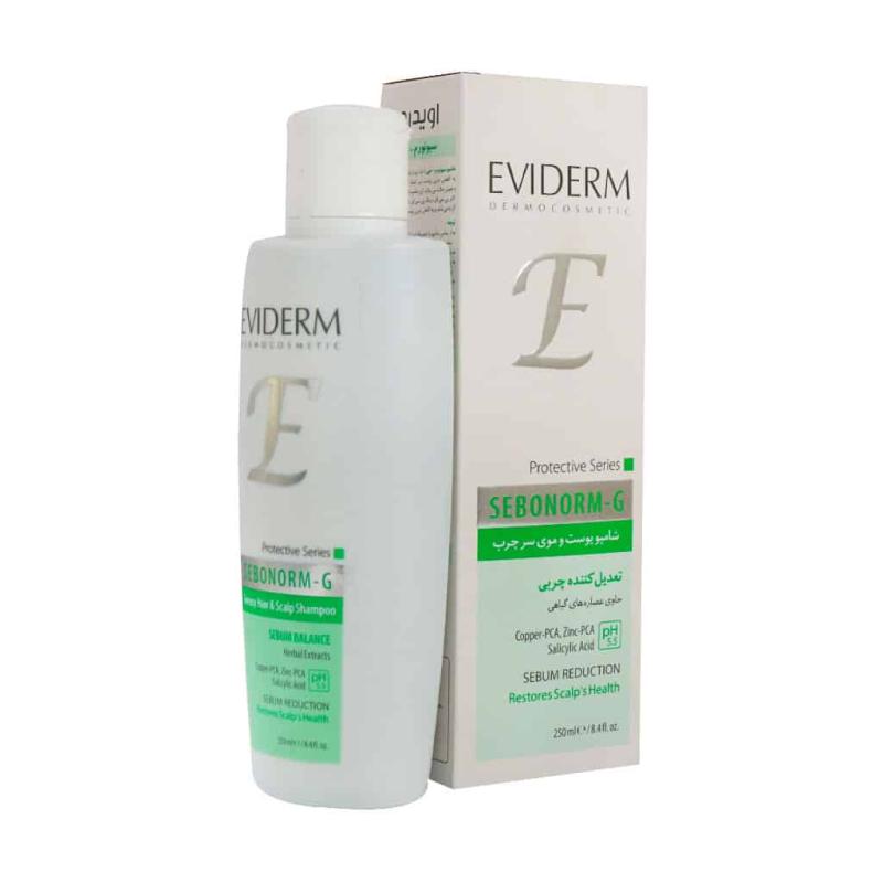 شامپو سبونورم جی اویدرم مناسب پوست و مو سر چرب 250 میلی لیتر Eviderm Sebum G Normalizing Shampoo For Oily Skins & Hair 250 ml