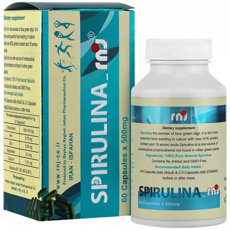 کپسول اسپیرولینا آر ان جی ریحان نقش جهان 60 عددی Spirulina rnj Reyhan Naghsh Jahan 60 caps