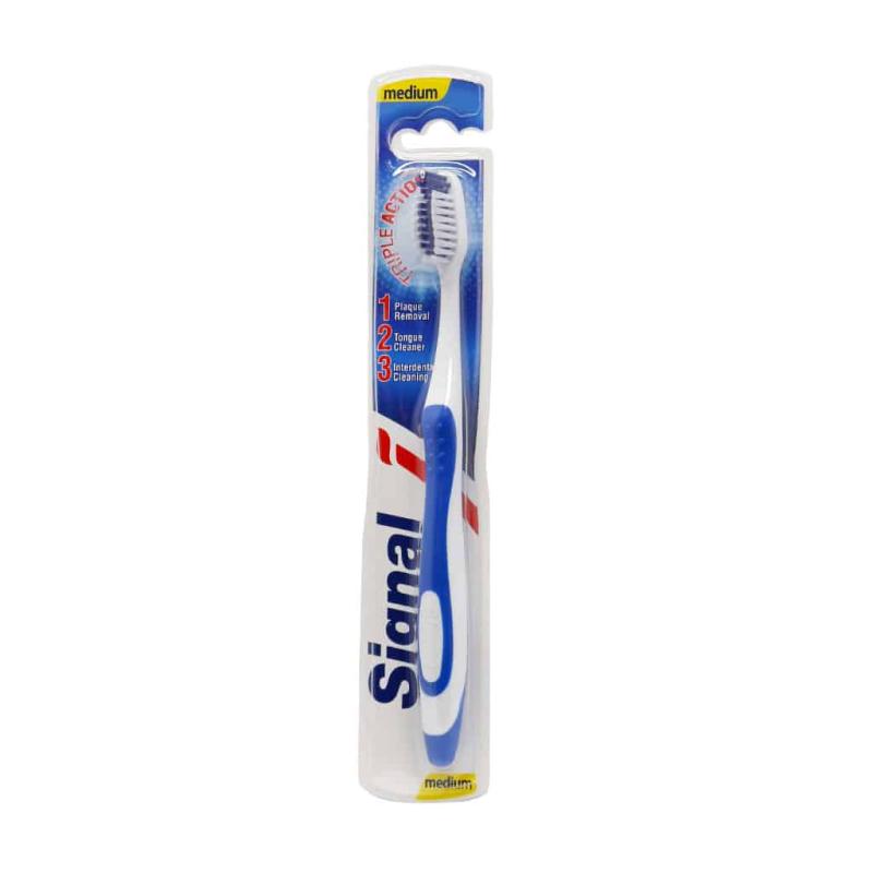مسواک سه کاره سیگنال مدل تریپل اکشن با برس متوسطی که دارد، به راحتی به دندانهای عقبی دسترسی پیدا می کند. با استفاده از مسواک سه کاره سیگنال می توانید به راحتی لا به لای دندانها و پشت دندانها را مسواک بزنید تا کاملا از مواد اضافی پاک شوند. برس مسواک سه کاره سیگنال از الیاف لطیف و نرم ساخته شده است و هیچ آسیبی به دندانها و لثه ها وارد نمی کند.