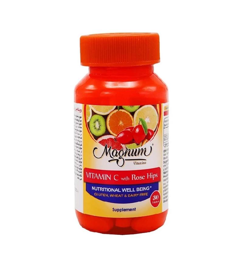 قرص ویتامین سی پلاس رز هیپ مگنوم ویتامینز 30 عدد Vitamin C With Rose Hips