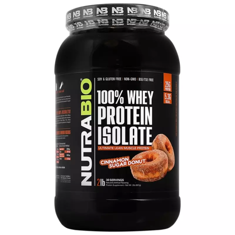 پودر پروتئین وی ایزوله نوترابایو طعم دونات دارچین شکری907 گرمی Whey Protein Isolate 907 g Nutra Bio
