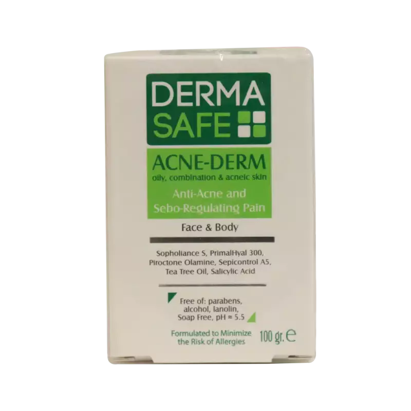 پن پوست چرب مختلط و دارای آکنه درماسیف پارس حیان ۱۰۰ گرم Derma Safe Acne Derm Anti Acne & Sebo Regulating Pain 100 g