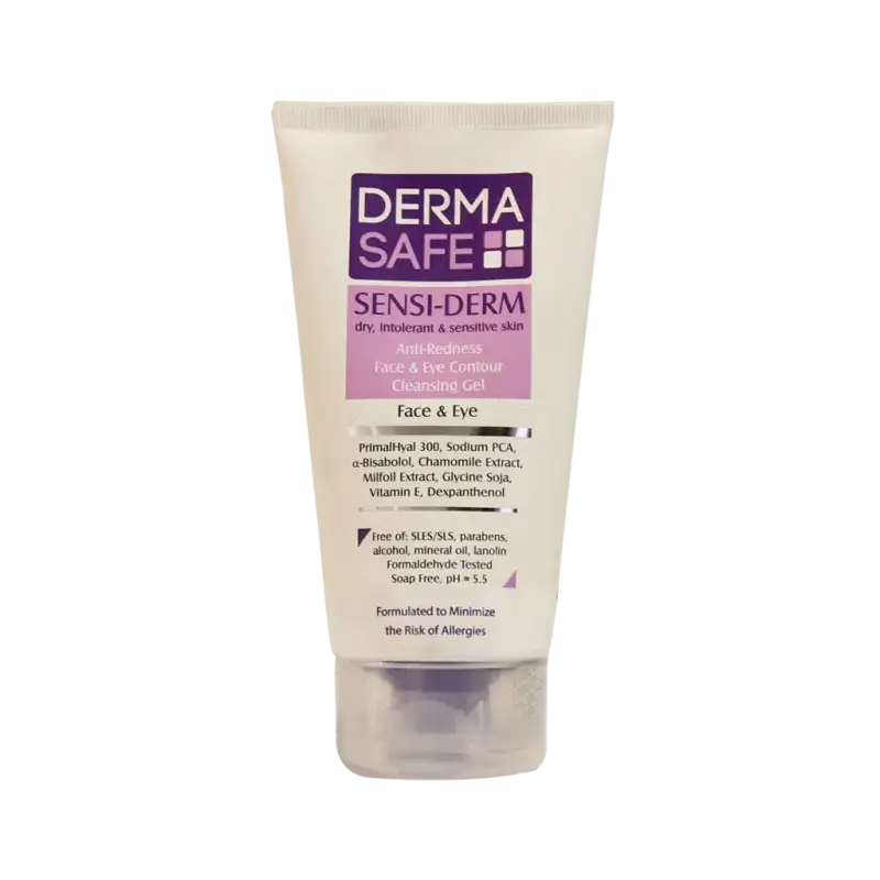 ژل شستشوی صورت و دور چشم درماسیف مناسب پوست های خشک حساس و مستعد قرمزی 150 میلی لیتر Derma Safe Cleansing Gel Anti Redness Face & Eye Skin 150 ml