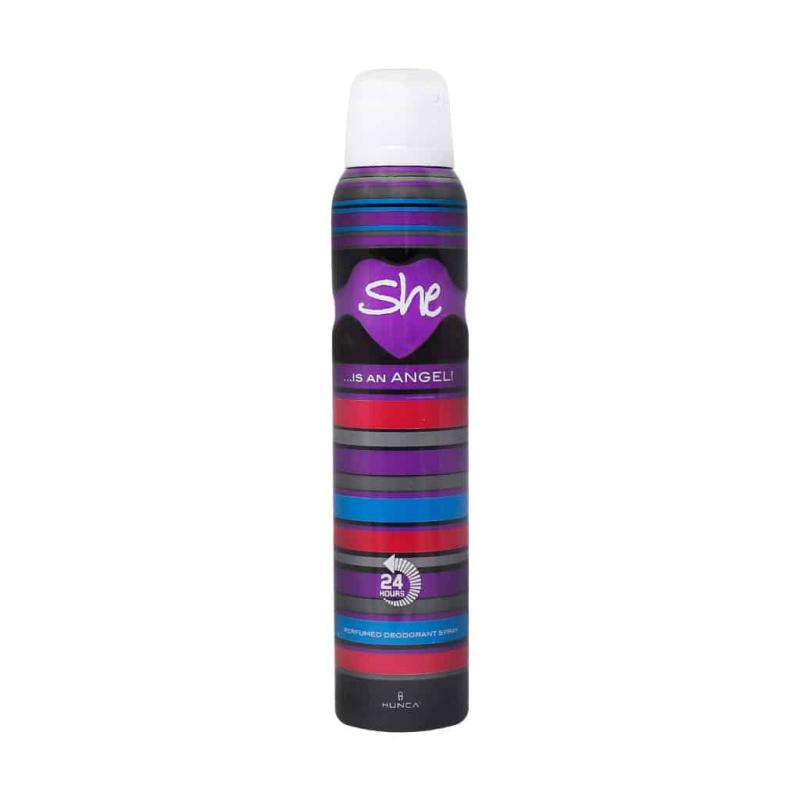 اسپری خوشبو کننده بدن زنانه آنجل شی با ماندگاری ۲۴ ساعته و عطر فوق العاده خود قادر است در سراسر روز شما را خوشبو نگه دارد. این محصول مناسب بدن و لباس بوده و هیچگونه لکی بر روی لباس ایجاد نمیکند.