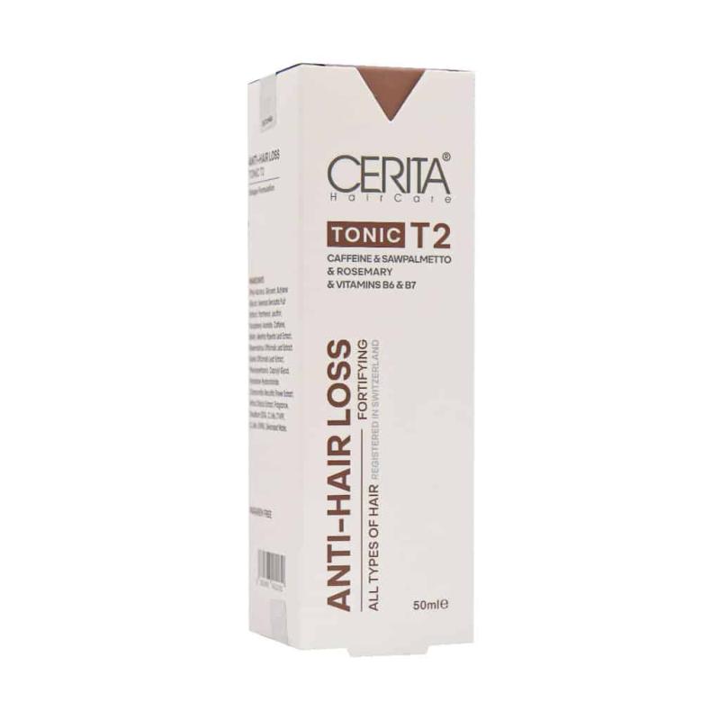 هیرتونیک گیاهی سریتا T2 حاوی بیوتین (ویتامین H یا ویتامین B7) می باشد که از مواد ضروری برای رشد مو می باشد. از آنجایی که پیاز مو از سلول های اپیتلیال ساخته شده است به مقدار کافی بیوتین و آنزیم های لازم جهت فرآوری نیاز دارد، بنابراین بیوتین رشد مو را تسریع می کند. کافئین گردش خون پوست سر را بهبود می بخشد، اثرات منفی هورمون دی هیدرو تستسترون را خنثی کرده و علاوه بر این حتی سرعت رشد مو را تا حد نرمال آن بالا می برد. ساوپالمیتو داروی گیاهی است که از میوه درخت کاج کوتوله آمریکایی فرآوری شده که آنزیم 5-آلفا ردوکتاز که از عوامل مهم ریزش موی هورمونی است را مهار می کند.