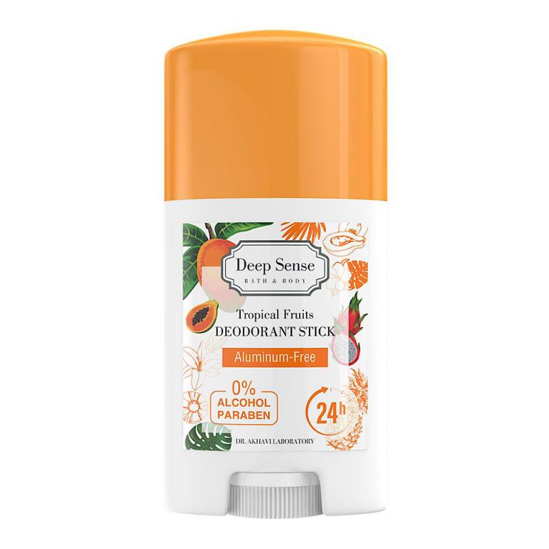 استیک ضد تعریق بدن تروپیکال دیپ سنس محصولی جهت خوشبو کردن بدن و در عین حال جلوگیری از تعریق مجدد بوده که فاقد ترکیبات مضری همچون الکل، پارابن و آلومینیوم است. این استیک ضد تعریق با ماندگاری 24 ساعته از بدن شما در برابر تعریق محافظت کامل را به وجود آورده و به خاطر وجود ویتامین E به رطوبت رسانی پوست میپردازد و از خشکی پوست ناحیه زیر بغل جلوگیری میکند. عصاره آلوئه ورا موجود در استیک دئودورانت دیپ سنس دارای خاصیت التیام بخش و ترمیم کننده پوست است. جهت استفاده از این محصول توصیه میشود روی پوست تمیز و خشک استفاده شود.