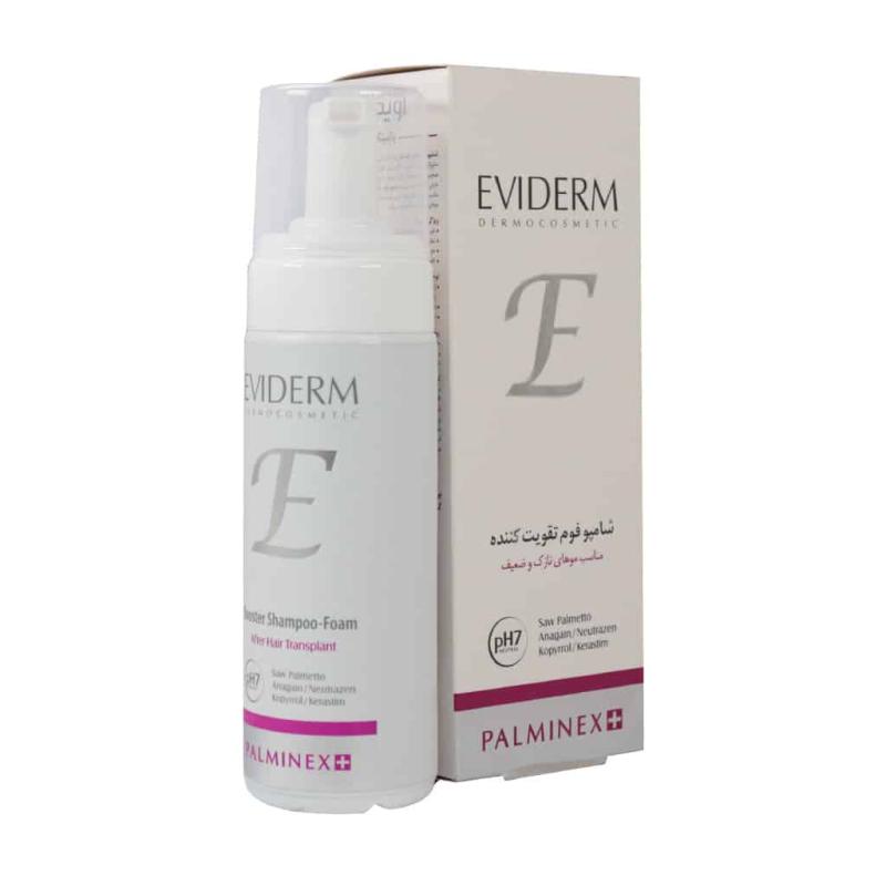 شامپو فوم تقویت کننده پالمینکس پلاس اویدرم مناسب بعد از کاشت مو 150 میلی لیتر eviderm foam booster shampoo 150 ml