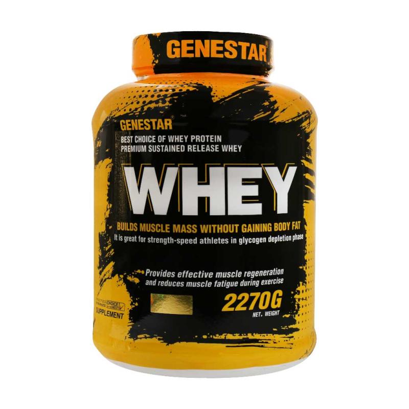پودر پروتئین وی ژن استار انواع مختلفی از اسیدهای آمینه را در خود جای داده است. این مکمل حاوی پروتئین وی کنستانتره و هیدرولیز شده بوده و موجب افزایش حجم عضلانی میشود به همین دلیل محصولی مناسب برای ورزشکاران است. این محصول با طعم بیسکوئیت وانیلی عرضه شده و ۲۲۷۰ گرم وزن دارد. پروتئین وی علاوه بر عضله سازی به چربی سوزی نیز کمک میکند. کاهش چربی در کنار افزایش حجم عضلات مهمترین مزیت استفاده از محصول فوق است که آن را در میان بدنسازان و ورزشکاران محبوب میکند. این پودر را هم به آب و هم به شیر میتوانید اضافه کرده و میل نمایید. پیشنهاد میشود این مکمل را همراه با آب زیاد مصرف نمایید تا مواد زاید حاصل از متابولیسم پروتئین از بدن دفع شود و اختلال عضلانی هنگام تمرینات ورزشی ایجاد نشود