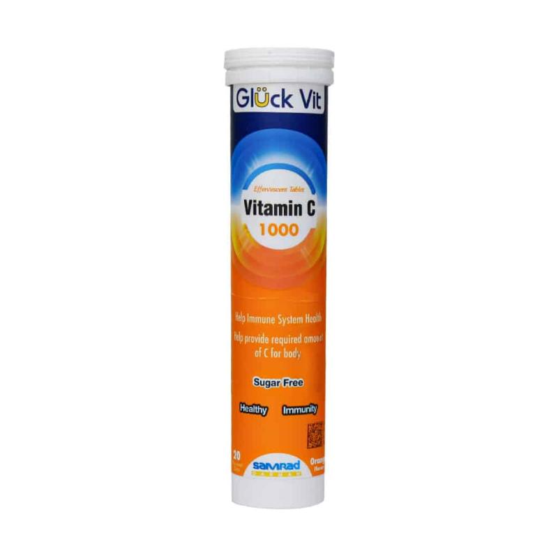 قرص جوشان ویتامین C 1000 میلی گرم گلوک ویت 20 عددی Gluck Vit Vitamin C 1000mg 20 Effervescent Tablet