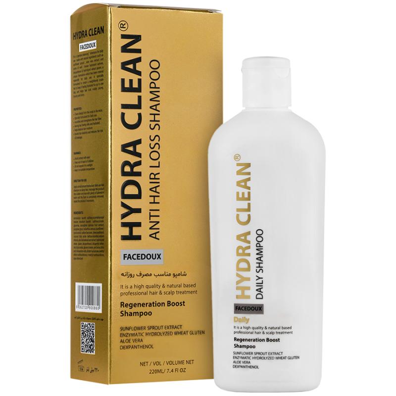 شامپو hydra clean روزانه فیس دوکس یکی از شامپوهای لاین هیدراکلین از برند فیس دوکس است که به منظور شستشوی روزانه انواع پوست سر و مو در بطری پلاستیکی به حجم 220 میل در ایران تولید می شود.
