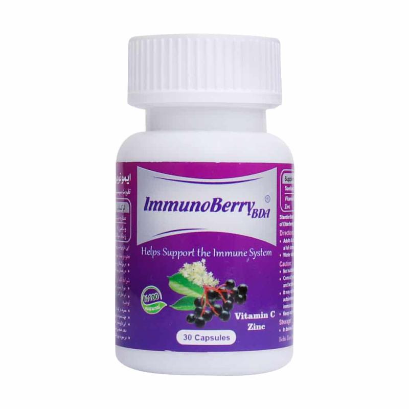 - ترکیبات: حاوی عصاره خشک میوه گیاه الدربری، ویتامین C و زینک می باشد که بر اساس وجود 4.8 میلی گرم آنتوسیانین تام استاندارد شده است.
