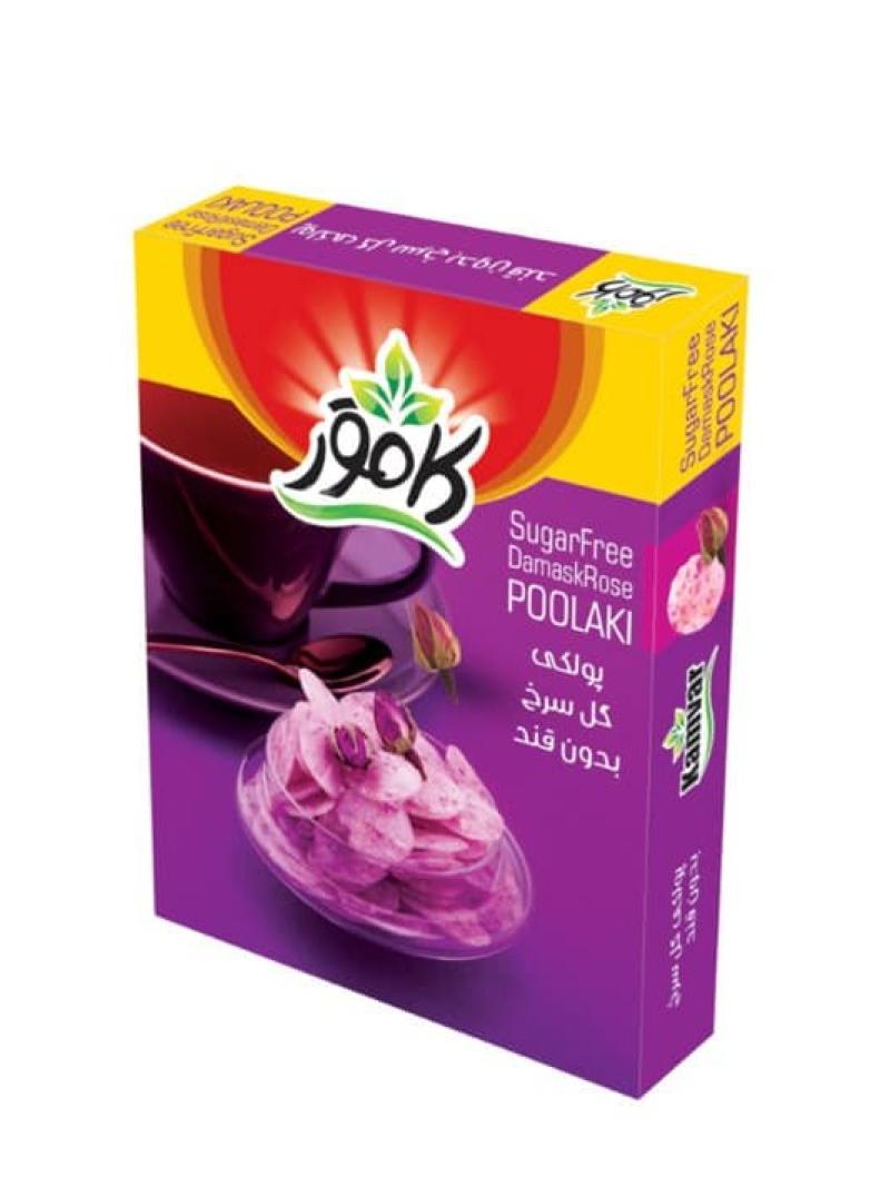 پولکی بدون قند کامور طعم گل سرخ 150 گرمی Kamvar Sugar Free Damask Rose Poolaki 150g