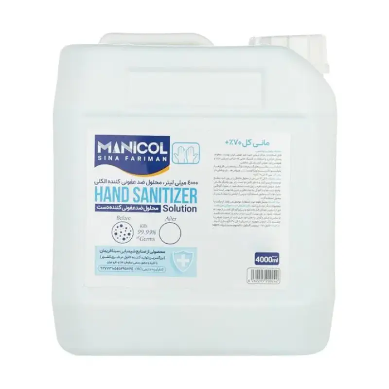 محلول ضد عفونی کننده الکلی مانی کل 70 درصد سینا فریمان 4000 میلی لیتر Manicol 70% Instant Disinfectant Solution 4000ml