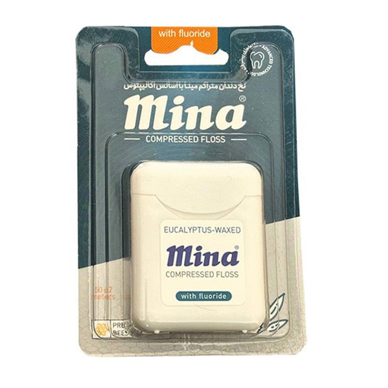 نخ دندان متراکم مینا با اسانس اکالیپتوس 50 متر Mina Waxed Dental Floss 50 m