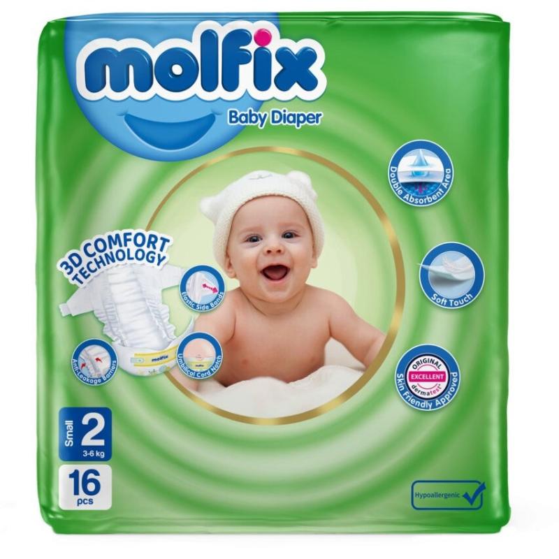 پوشک مولفیکس سایز ۲ مخصوص نوزادان 3 تا 6 کیلوگرم 16 عددی Molfix Baby Diaper Number 2