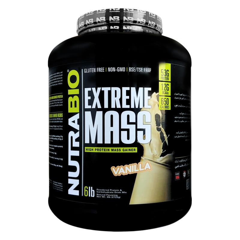 پودراکستریم مس گینرنوترابایو طعم وانیل 2722 گرمی Nutra Bio Extreme MASS Vanilla Powder 2722 gr