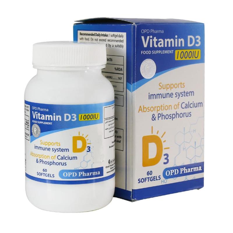 سافت ژل ویتامین D3 1000 واحد او پی دی فارما 60 عددی OPD Pharma Vitamin D3 1000 IU