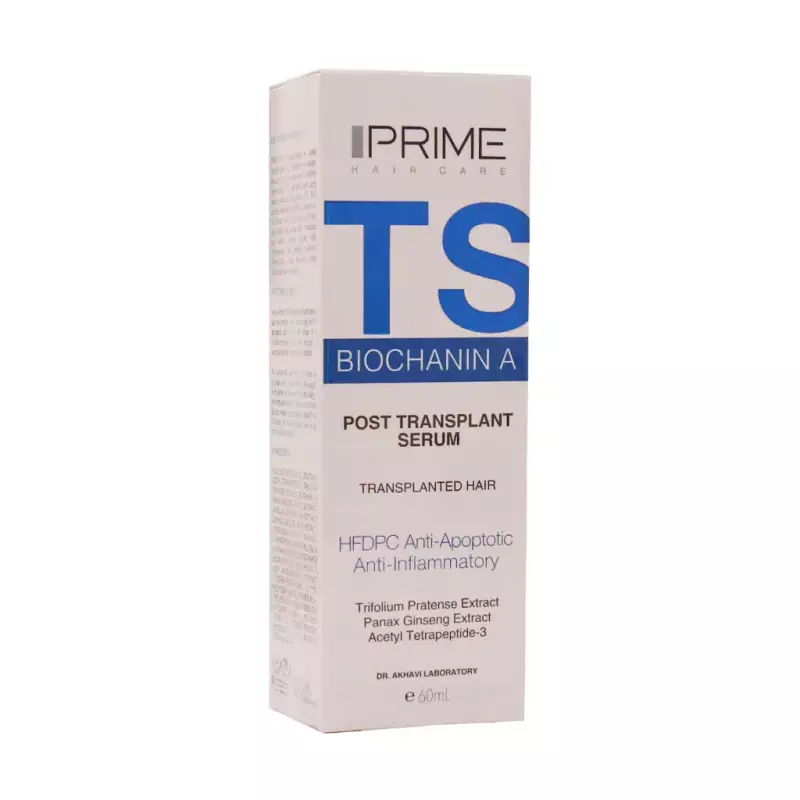 سرم پس از کاشت مو TS پرایم با دارا بودن ترکیبات موثر مانند شبدر قرمز، جینسینگ و استیل تترا پپتید-۳ برای موهای کاشته شده فرموله شده است که به منظور تسریع روند بهبود و تقویت رشد موهای تازه کاشته شده استفاده میشود. ترکیبات مغذی موجود در این محصول به تقویت و تکثیر سلولهای بنیادی مو و کاهش التهاب و خشکی ناشی از کاشت کمک میکند. سرم موهای کاشته شده مدل TS پرایم با داشتن دکسپانتنول، عصاره چای سبز و جینسینگ سبب تقویت موها و رشد مجدد مو میشود و پروتئین مخمر هیدرولیز شده به افزایش استحکام مو کمک میکند.
