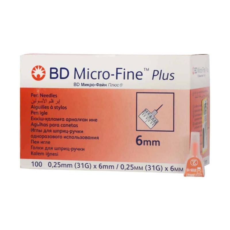 سوزن قلم انسولین بی دی 6 میلی متر بسته 100 عددی Solution Insulin Pen Needle 6mm pack of 100