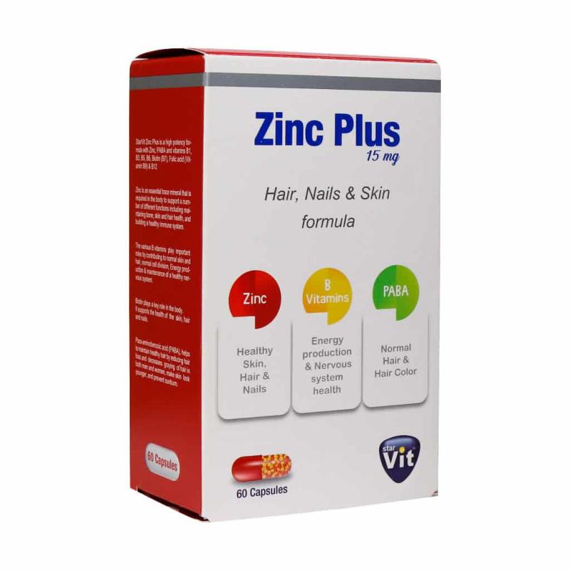 کپسول آهسته رهش زینک پلاس 15 میلی گرم استار ویت 60 عدد Starvit Zinc Plus 15 mg 60 Capsules