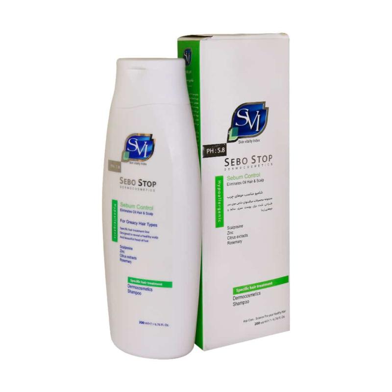 شامپو سبو استاپ اس وی آی مخصوص موهای چرب 200 میلی لیتر Svi Sebo Stop Shampoo For Greasy Hair 200 ml