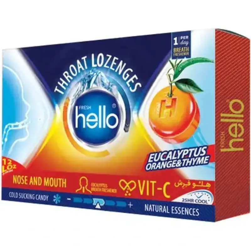 آبنبات اکالیپتوس هلو فرش با طعم پرتقال و آویشن 12 عددی Throat Lozenges Thyme And Blueberry