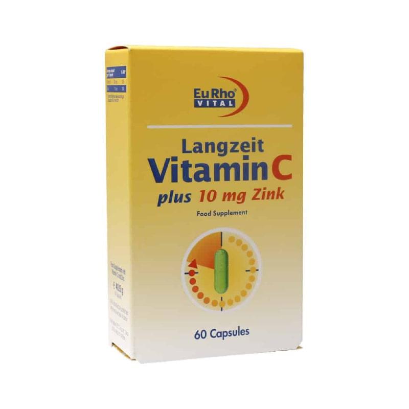 کپسول ویتامین c + زینک 10 میلی گرم یوروویتال 60 عددی EuRho Vital Langzeit Vitamin C plus Zink 10mg 60