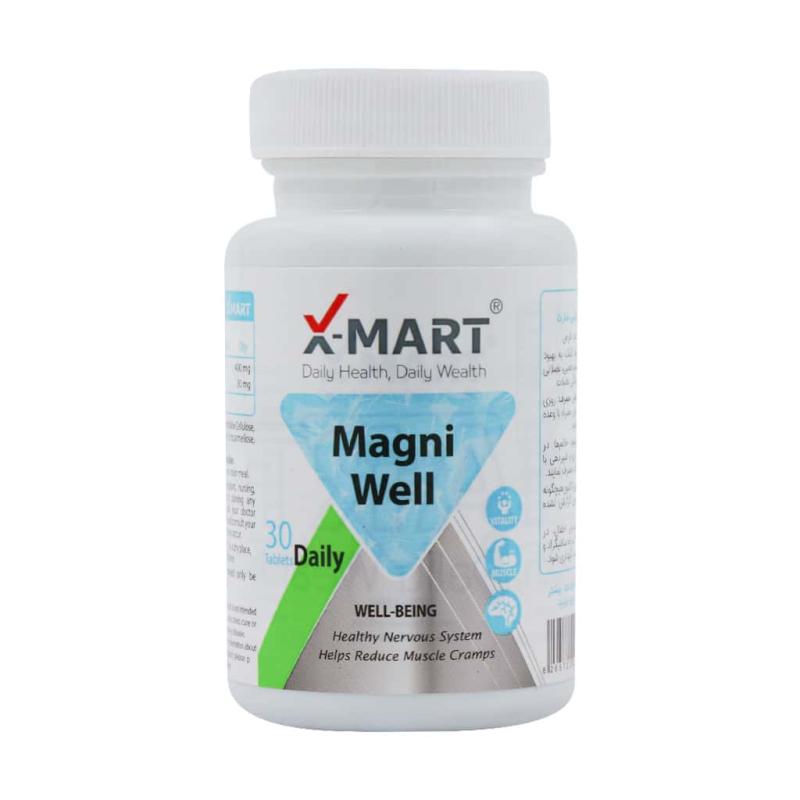 - قرص مگنی ول ایکس مارت یک مکمل غذایی برای کاهش گرفتگی عضلات و بهبود عملکرد سیستم عصبی است. همانطور که میدانید درد ناشی از گرفتگی عضلات، بسیار دردناک بوده و مانع از انجام فعالیتهای روزانه میشود.